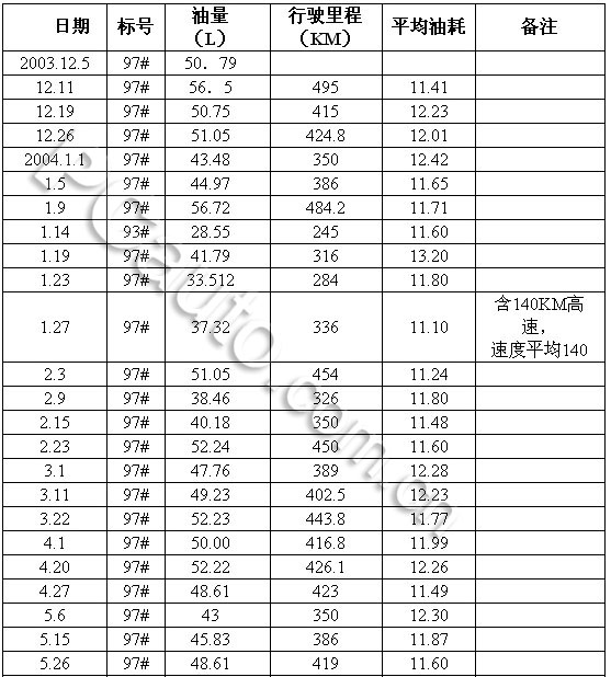 從2003年12月5日到2004年12月5日,我的新雅閣2.0油耗記錄剛好一年,現在把它奉獻出來供大家參考一下~