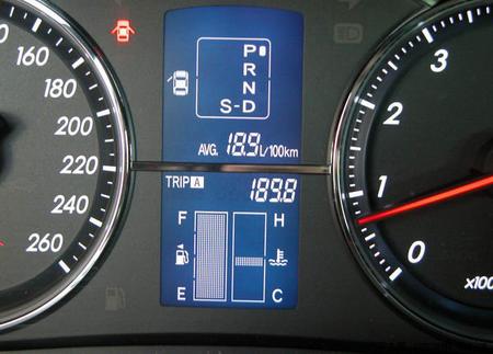 我的車是2.5V導航版,已經燒了將近3箱油,第一箱油電腦顯示平均油耗16.8升,第二箱油電腦顯示平均油耗16.9升,現在(第三箱油)電腦顯示平均油耗17.1升,偶按實際加油量和跑的公里數算了一下,前兩箱是平均16.2升!!!我已經找了經銷商3次了,昨天(05.12.3)他們出修理工又和我共同進行了測試,跑了35公里用了5.3升油,平均15.1升,也許是熱車連續行走(沒有每天早晨熱車的過程)或行駛路程短用油量少(加油量太少加油機計量不準)造成的誤差。經銷商說周一給我聯系北京(豐田公司)商量解決辦法。