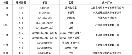 摘錄轎車產品油耗測試結果如下(1.4L 1.6L 1.8L 2.0L 2.4L油耗最低產品):