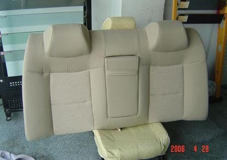 前座上完椅套后,把后座放到前座上,這樣上后靠背套就方便了